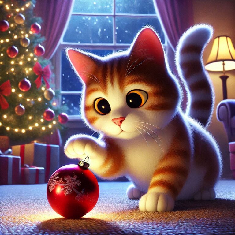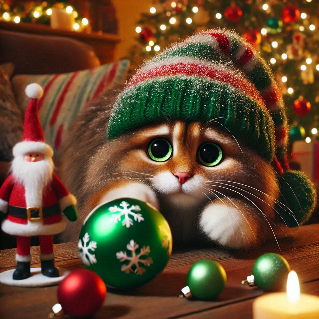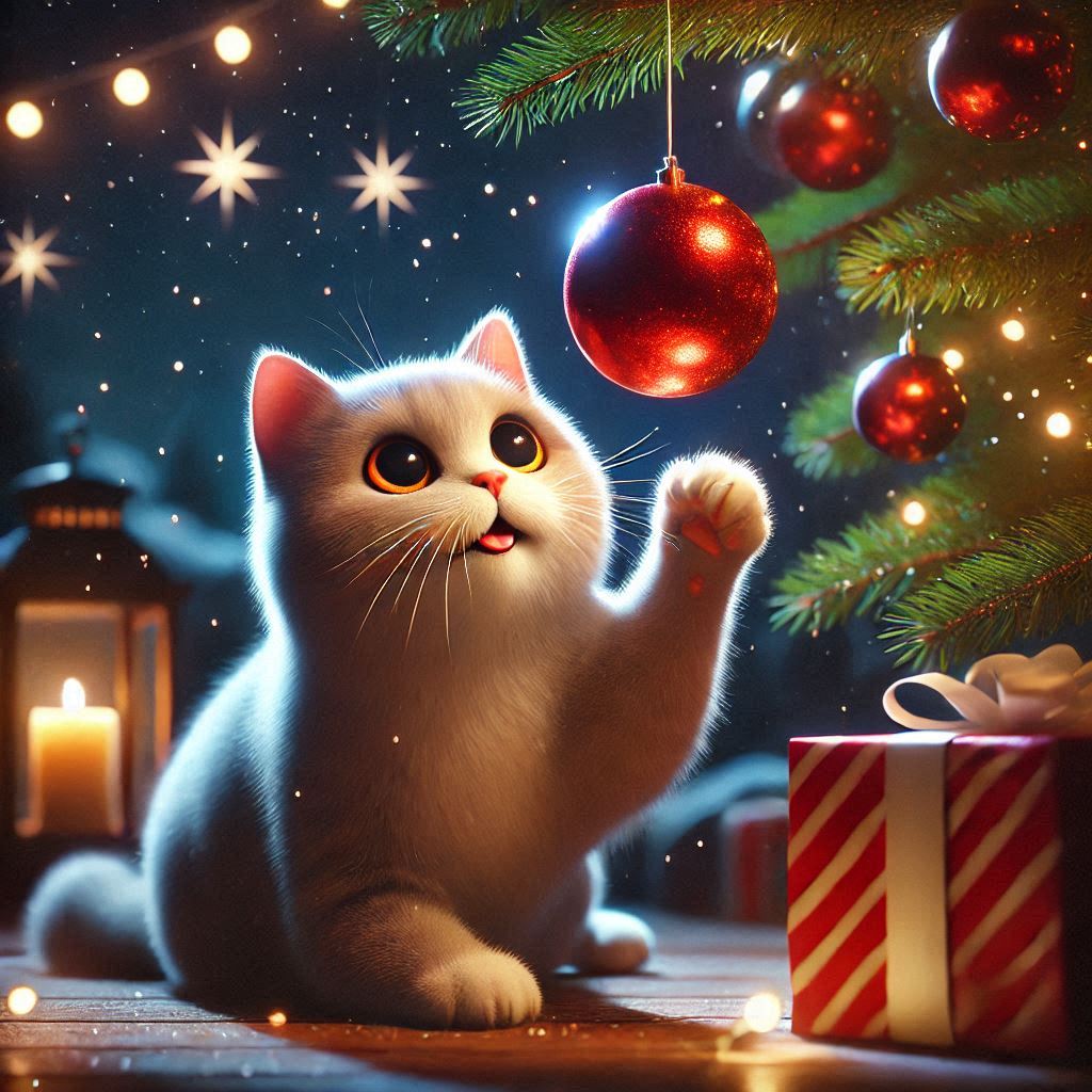 Adornos pequeños: Los adornos de Navidad, como bolas, campanas, cintas y figuritas, pueden ser irresistibles para los gatos curiosos. Asegúrate de colocar estos objetos en lugares altos o inaccesibles para evitar que los mastiquen o traguen, lo cual podría causar obstrucciones.